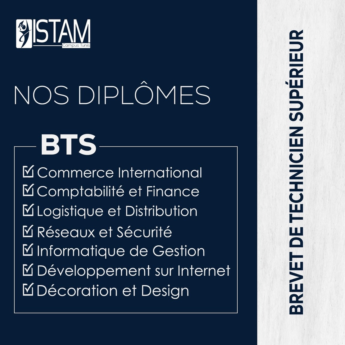 Le BTS est ouvert aux titulaires du baccalauréat de l’enseignement secondaire, et, sous certaines conditions, aux titulaires du BTP (Brevet de Technicien Supérieur).